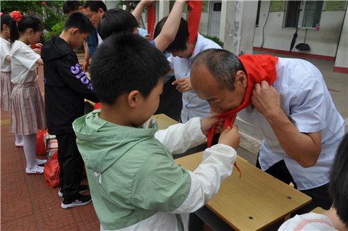 活動(dòng)開始時(shí),學(xué)校少先隊(duì)員們?yōu)橹飨_(tái)上的師長佩戴了紅領(lǐng)巾表達(dá)少先隊(duì)員傳承革命精神的決心。緊接著,在雄壯的國歌聲中,一面鮮艷的五星紅旗在校園主席臺(tái)前徐徐升起,在場的全體黨員及學(xué)生們對著行注目禮,并大聲唱起國歌。而后,由公司黨總支副書記周紅代表全體黨員對同學(xué)們致以節(jié)日的祝賀,祝同學(xué)們節(jié)日愉快,身體健康,并殷切希望全體少年兒童努力學(xué)習(xí),將來為建設(shè)祖國貢獻(xiàn)力量!